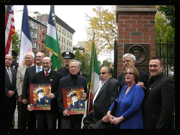 On Wednesday, November 5, Carter Jones' bas reliefs of Lieutenant Joseph Petrosino were officially unveiled in a ceremony in the Soho park named after the former police officer. Lieutenant Petrosino served on the NYC police force from 1883 to 1909 and was a pioneer in the fight against organized crime. Hand-picked by then NYC Police Commissioner Theodore Roosevelt to investigate organized crime, Petrosino was assassinated by the mafia while working undercover in Sicily. The dedication was attended by members of the New York City police department, the NYC parks department and members of the Petrosino family.