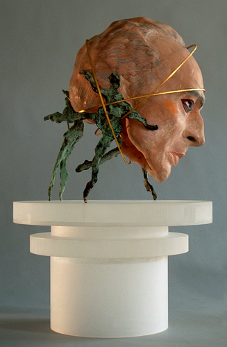 Terra cotta, copper, bronze, Tahitian Pearls, Gold Leaf & Plexiglass